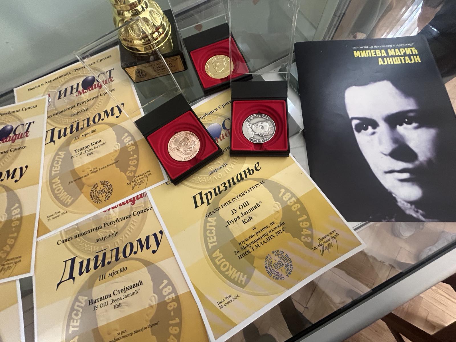 Гранд При награду нашој школи на манифестацији поводом 170 година од рођења Михајла Пупина у Идвору, плакете и дипломе нашим најуспешнијим ученицима – такмичарима ( 1.место и златна плакета Андреју Перичићу, Лени Тутуш и Милошу Мишићу, 2.место и сребрна плакета Александру Стричевићу и Петру Чвокићу, 3.место са бронзаном плакетом уручени су  Наташи Стојковић и Теодору Кишу, као и златна плакета  са дипломом уручена ментору – наставници Јасмини Јерковић) уручене су за врхунска постигнућа у оквиру тамичења ИНОСТ МЛАДИХ у организацији Савеза Иноватора Републике Српске из Бања Луке.